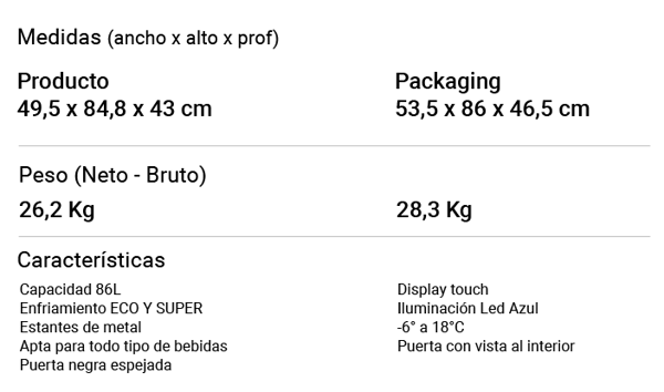 • Capacidad: 86 L