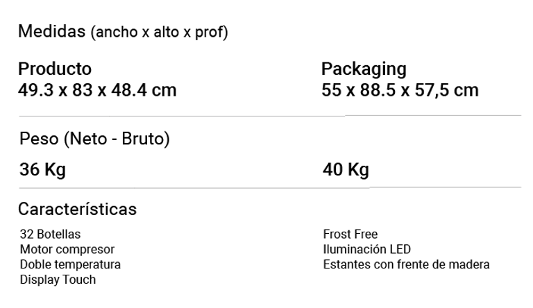 Gracias a su sistema de motor compresor y tecnología Frost Free, garantiza estabilidad de temperatura y humedad controlada, manteniendo intactos los aromas y sabores. Su diseño empotrable aporta distinción y se integra con naturalidad en cualquier cocina o espacio social, convirtiéndose en el centro de un ritual elegante y exclusivo.