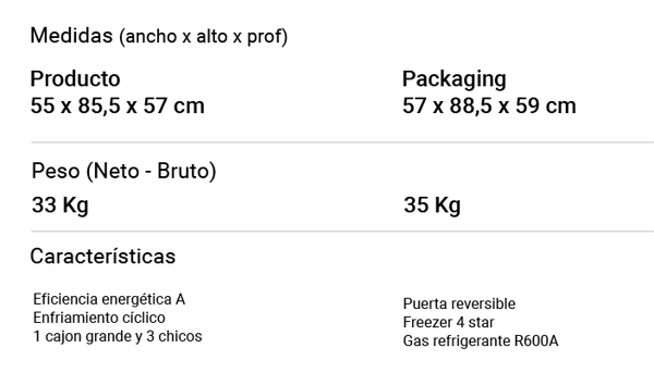 Este freezer es un elegante freezer vertical compacto de color blanco. En su interior, cuenta con 4 cajones separados para agrupar y ordenar alimentos por tipo y cantidad. Su puerta reversible hace que sea más fácil ubicarlo en cualquier sitio. Y, gracias a su disposición vertical, ocupa mucho menos espacio que otros freezers horizontales clásicos.