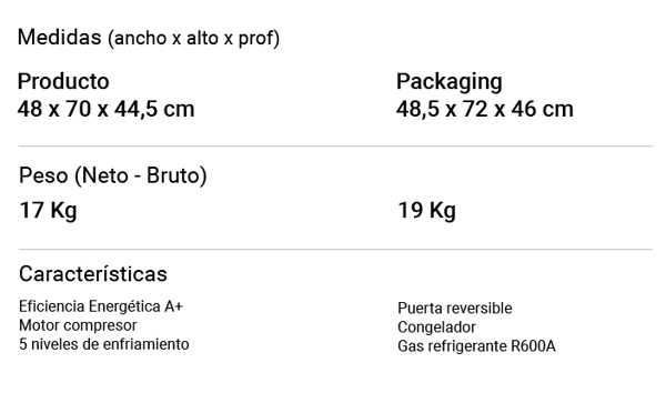 ¿Querés más practicidad? Su puerta reversible se adapta a tu espacio, sin importar la orientación, mientras que el congelador incorporado brinda un extra de comodidad que transforma este frigobar en un aliado versátil para el hogar, oficina o espacios recreativos.