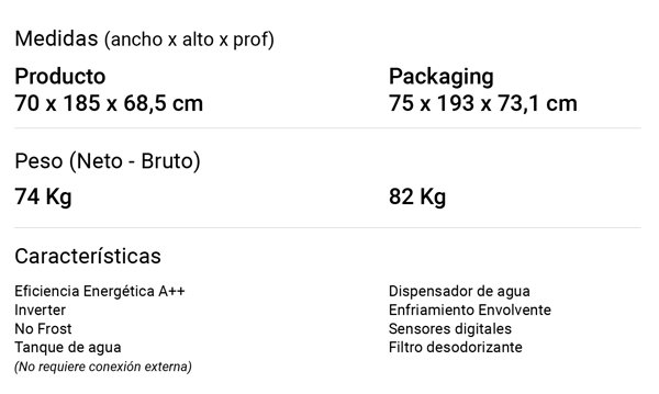 La heladera TM465I tiene tecnología INVERTER ajusta automáticamente la velocidad del compresor según la demanda de frío. Utiliza menos energía, minimiza el ruido y reduce el desgaste, generando un rendimiento de mayor durabilidad. Asimismo, la eficiencia energética A++ de esta heladera reduce notablemente el consumo de energía, generando un rendimiento de mayor durabilidad.