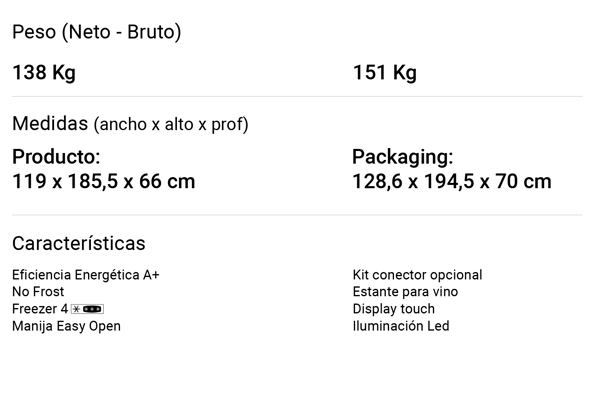 Heladera y freezer Vondom que en conjunto forman una Side by Side. La heladera Vondom HEL185 tiene un diseño clásico y elegante que puede combinar en cualquier cocina. En su interior, cuenta con distintos estantes desmontables para acomodar a gusto. Además, viene con dos cajones para frutas y verduras y anaqueles para botellas. El freezer Vondom FR185 es un elegante freezer vertical color acero inoxidable. Su puerta reversible hace que se más fácil ubicarlo en cualquier sitio.